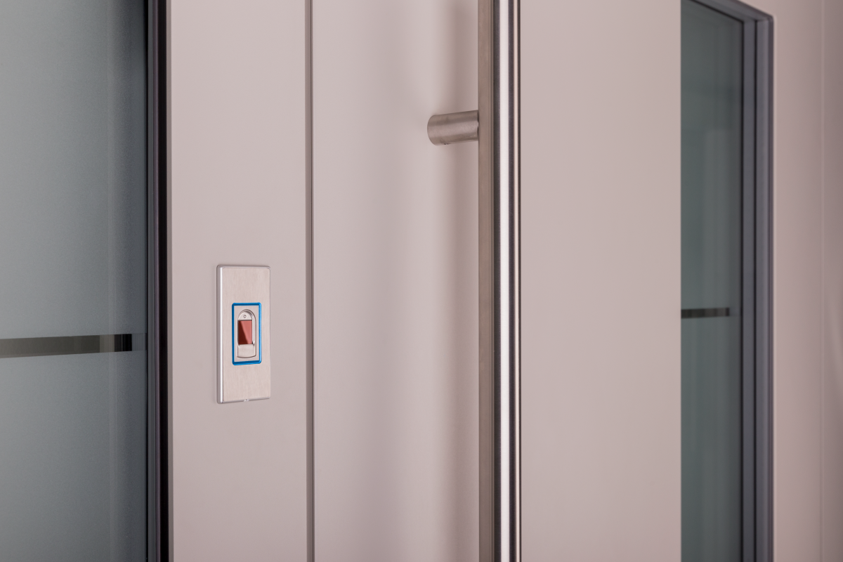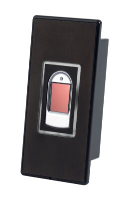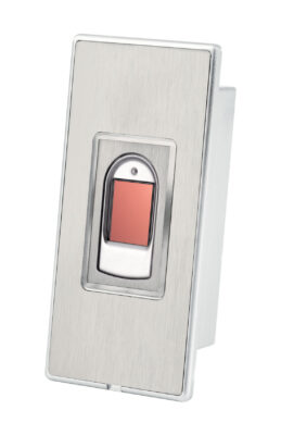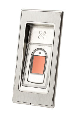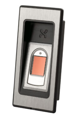 Der leistungsstarke und kleine Fingerabdruckscanner kann in das Türblatt eingebaut, neben der Tür oder an der Wand montiert werden. Erhältlich in R7- oder R8-Technologie.
